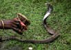 head of snakes as they claim money from devotees during snake festival at Khedaitola, though the Indian